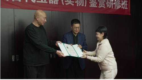 研修班结业仪式上,北京市文物交流中心副主任冯天书、中国收藏家协会玉器分会会长李江涛共同为学员们一一颁发了结业证书。